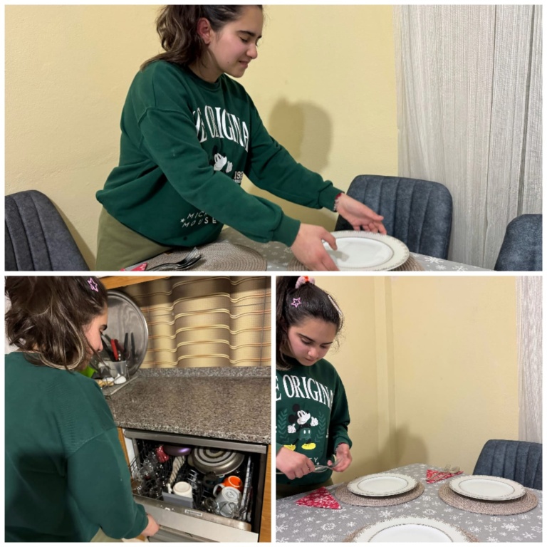 Ayrıca yemek sonrası mutfak düzenini sağlama etkinliği kapsamında sofra kurma, sofra toplama bulaşıkları makineye yerleştirme çay demleme ve servisinde öğrencilerimiz ailelerine destek oldular.