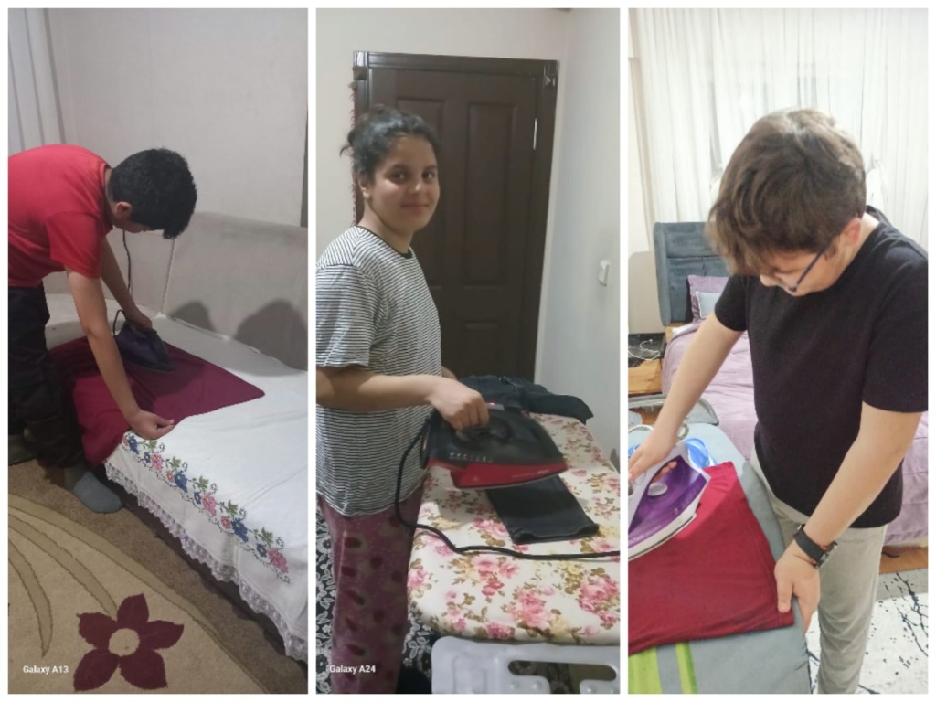 Yaşam becerileri projesinde bulunan ütü yapmanın temel bilgilerini öğrenme etkinliği kapsamında öğrencilerimiz ütü yapmanın inceliklerini güvenlik önlemleri alarak öğreniyorlar.